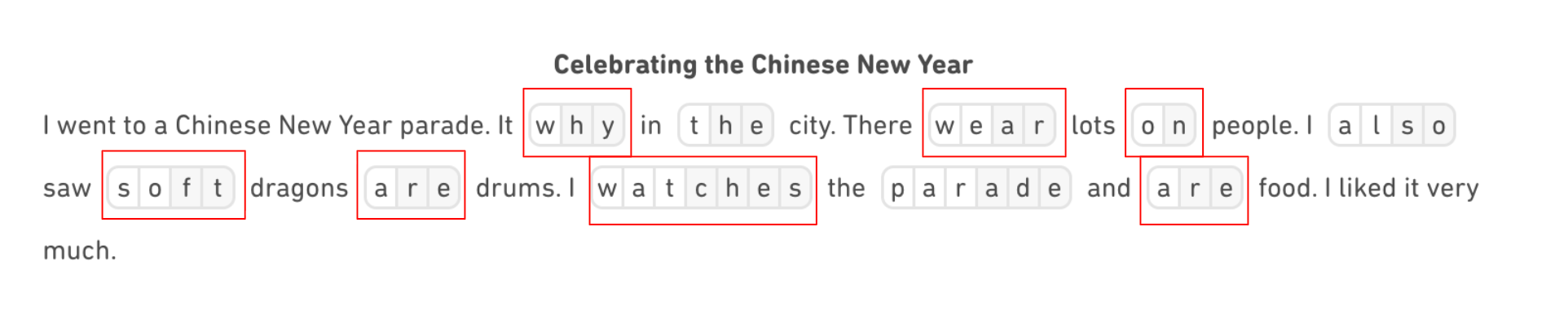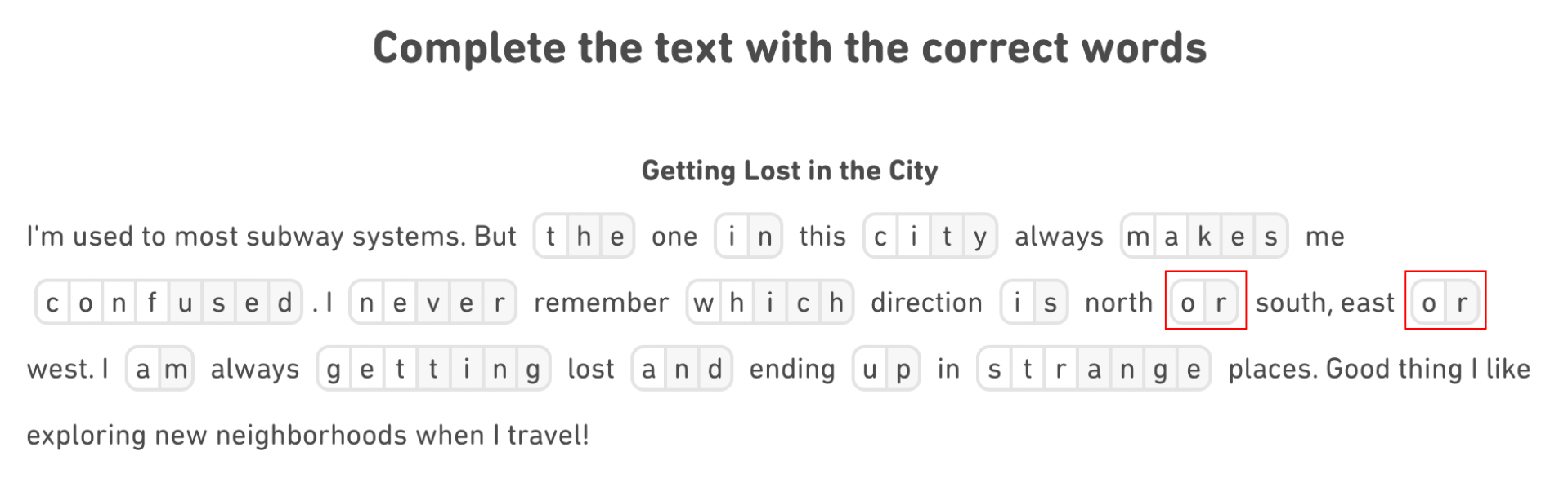 A very common mistake on Fill in the Blanks and Read and Complete is that students will fill in letters to create a real word, but they won't check that the word they entered actually makes sense in the passage.