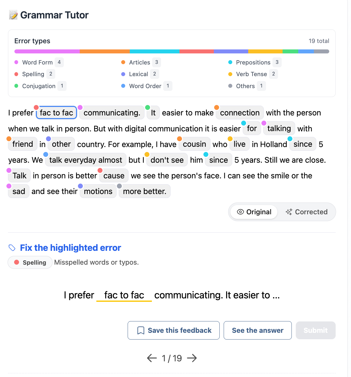 With Arno, you get unlimited practice questions for every question type on the Duolingo English Test for free. On our paid plans, you also get an instant estimated score plus feedback on your grammar and vocabulary. Arno even explains your mistakes to you so that you can learn.
