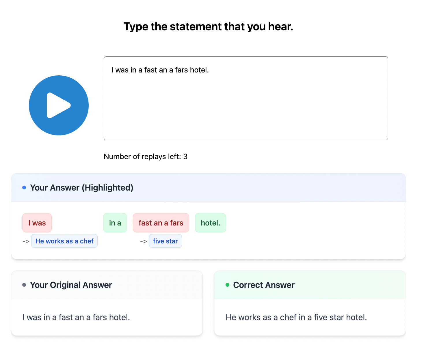 Arno's feedback on writing and speaking questions is a great way to make sure you have a solid grasp of these basic grammar concepts. After you submit a response, Arno will identify the grammar mistakes and then allow you to correct them so that you can learn from your mistakes.